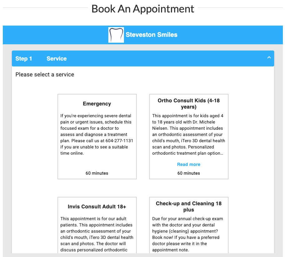 Steveston Smiles now offers online booking.
